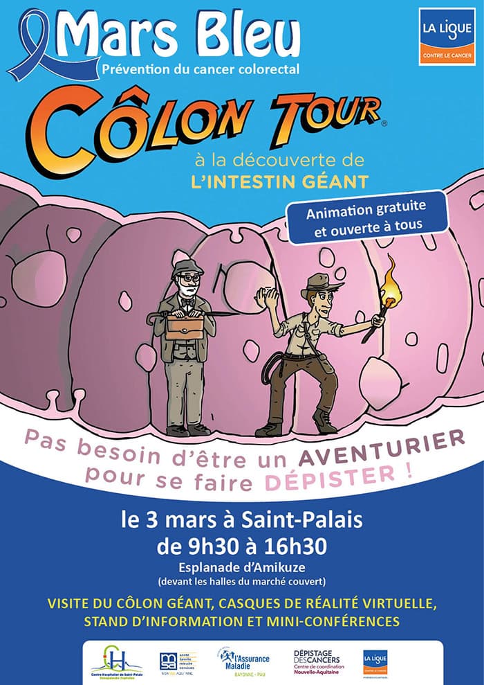 Le temps fort de ces animations sera incontestablement l’escale du « Côlon Tour » à Saint-Palais le jeudi 3 mars où la population d’Amikuze sera invitée à une journée d’animations et de prévention autour du côlon géant proposé par la Ligue Nationale contre le Cancer.